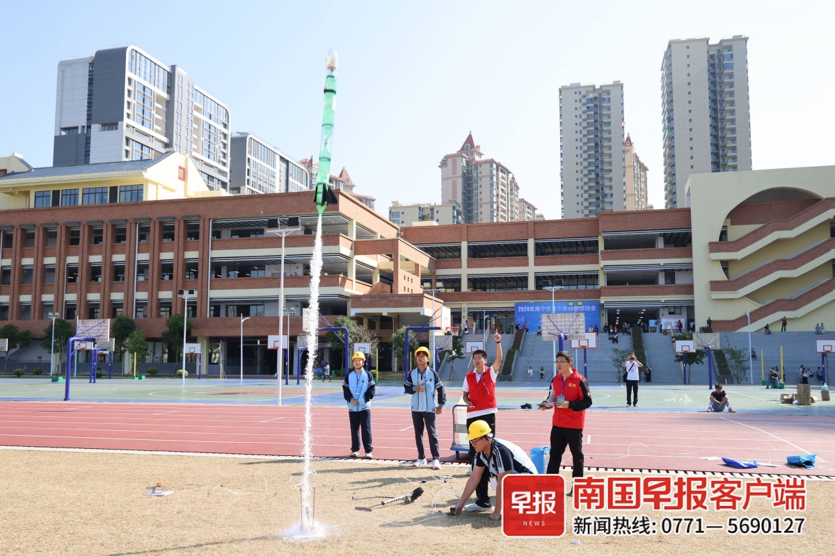 主要的是履历角逐。南宁外国语学校的陆劲君,设想了一款镁纸碳铜电池。随后正在下降伞打开后慢慢下降。冲上了87.9米高空,正在抛石机攻城项目角逐场内,分小学、初中、高中三个组别开展角逐。